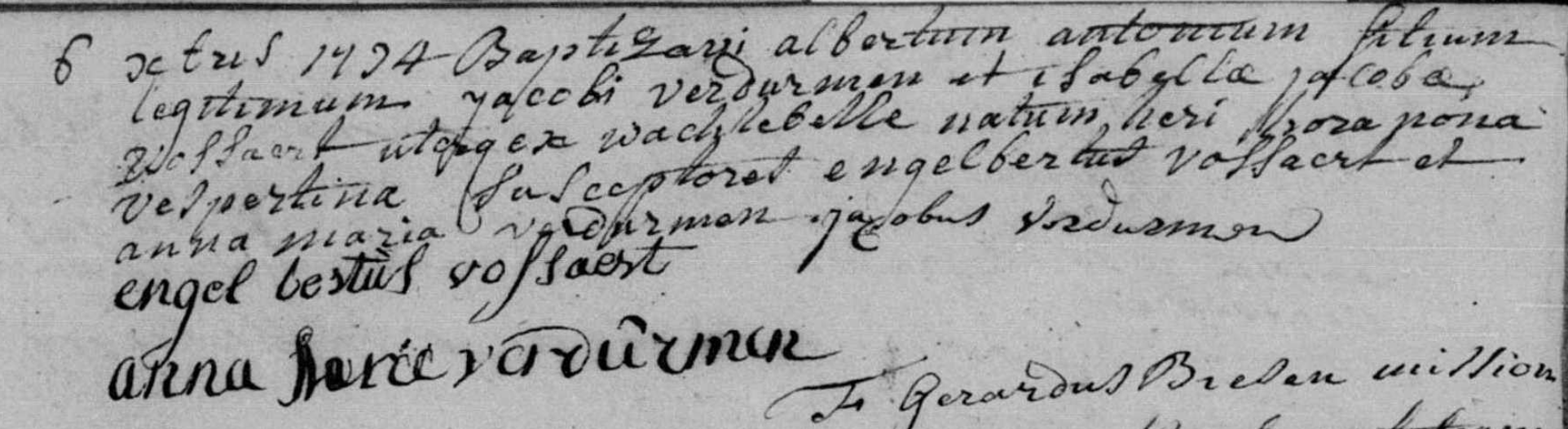| Vader | Jacobus VerdurmenJacobus Verdurmen ![]() * 25-09-1759 Wachtebeke, België † 30-11-1837 Wachtebeke, België ∞ Isabella Jacoba Vossaert, 11-07-1784 Wachtebeke, België, 3 kinderen |