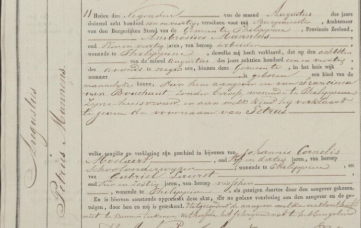Ambrosius MannensAmbrosius Mannens  * 24-11-1796 Adegem, Maldegem, België † 16-09-1847 Boekhoute, Belgie ∞ Marie Thérèse Bonte, 23-07-1824 Boekhoute, 2 kinderen ∞ Francisca van Bouchaut, 1 kind |