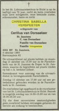 ∞ Christina Isabella Verspeeten, 01-02-1929 Sint Jansteen, Nederland