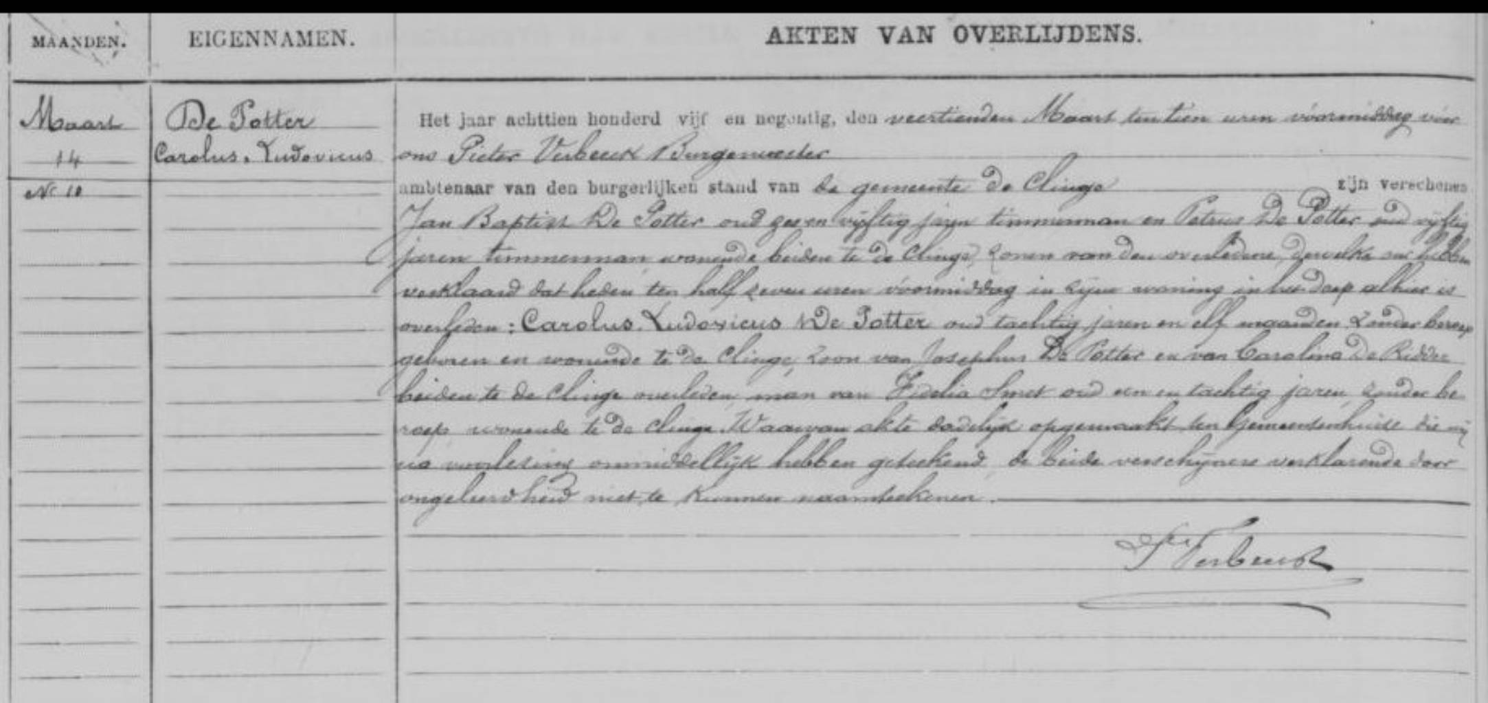 Akte 10, Overlijdens De Klinge 1895 |